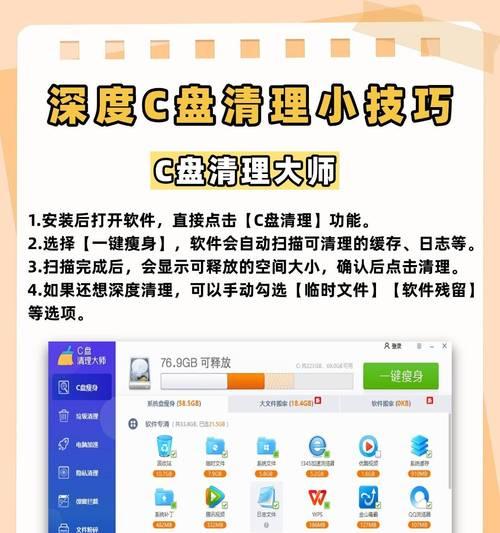 随着电脑使用时间的增长,不少人会发现自己的电脑变得越来越慢,运行不稳定,尤其是C盘存储空间越来越少,经常提示磁盘空间不足。这时候,清理C盘中的垃圾文件是非常必要的。本文将为大家介绍最简单的C盘瘦身方法,只需15个步骤,就能轻松释放C盘存储空间。