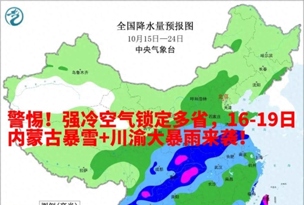 警惕!强冷空气锁定多省,16-19日内蒙古暴雪+川渝大暴雨来袭!
