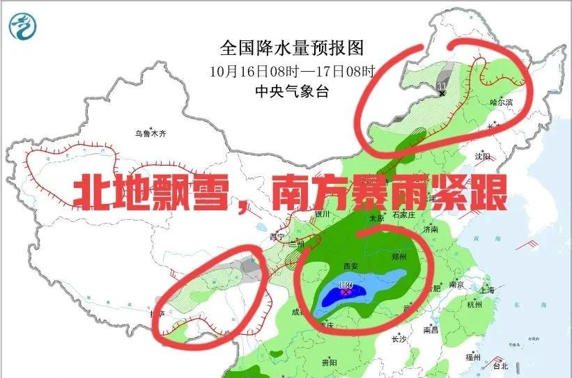 这股冷空气一头牵着北方的雪,一头连着南方的雨。