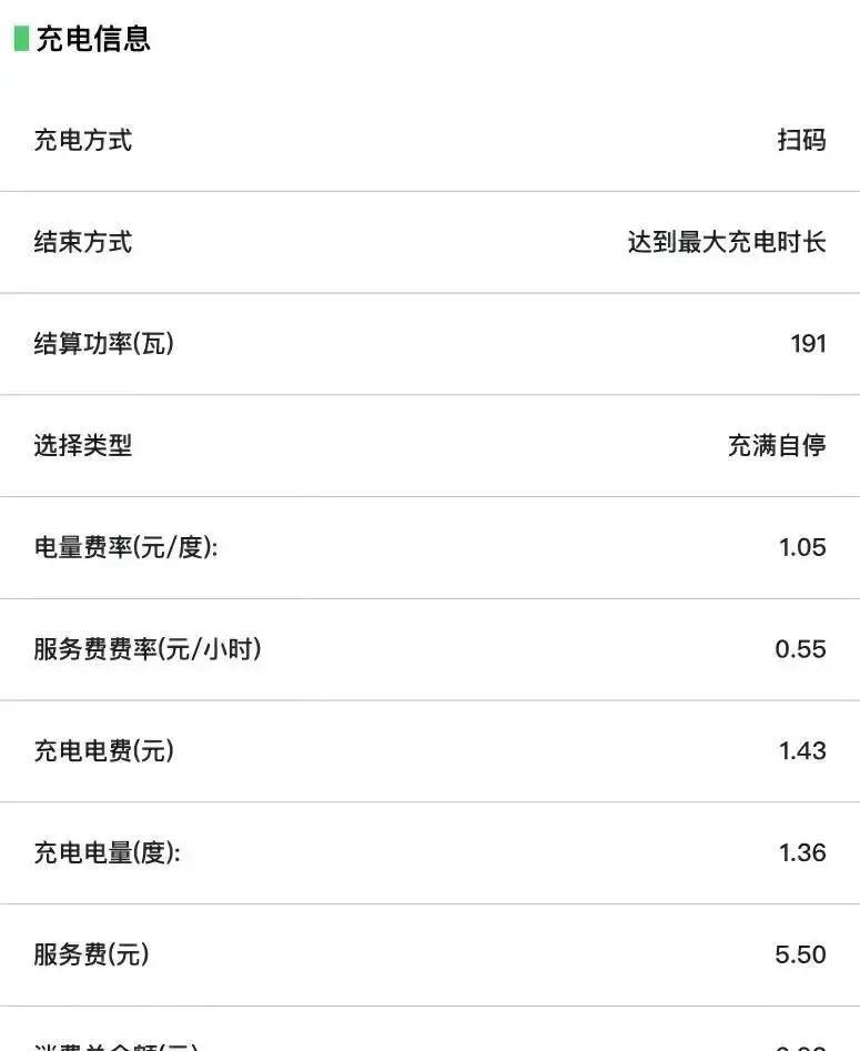 广东某电动车用户给电动车充电用了1.36度电,扣费6.93元,其中电费1.43元,服务费5.50元,一次充电的服务费竟然比电费高出5倍。河南某电动车用户给电动自行车充电335分钟,耗电1.49度,按照收费标准费用应为1.5元左右,但他充值的10元却被全部扣除,并且不予退还。