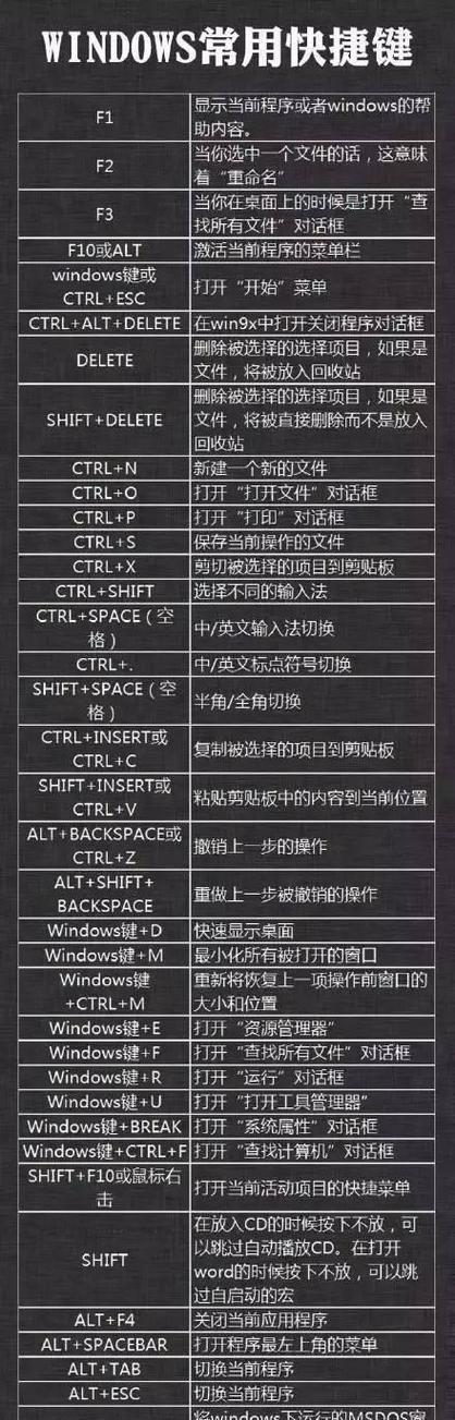 2.提高效率:快捷键操作可以大幅提高操作效率,节省时间成本。