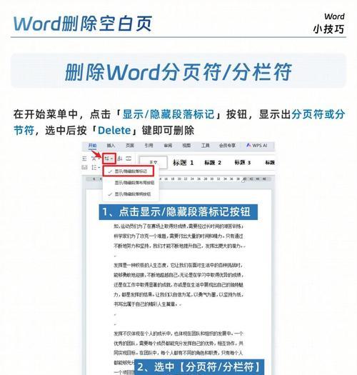 在Word文档中,我们可以使用页面分隔符将文档分成多个部分。但是,多余的页面分隔符也可能导致出现空白页。删除这些多余的页面分隔符即可去除空白页。