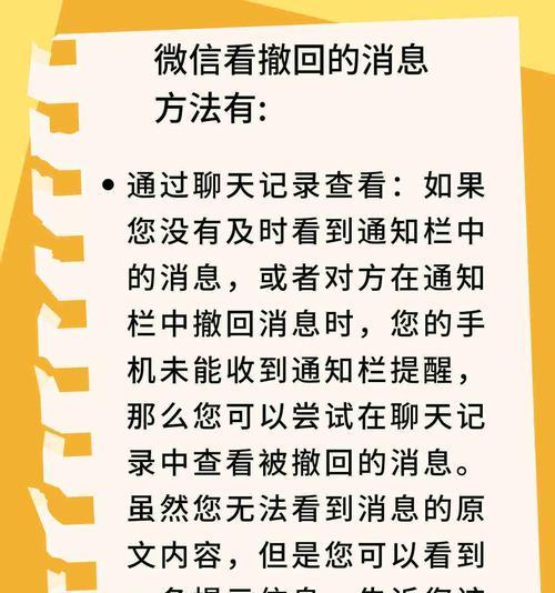 随着社交软件的普及,微信已成为人们生活中必不可少的一部分。但是,当我们收到一条重要的消息,却在不经意间被对方撤回了,这种感觉真的很糟糕。难道这条消息就这样消失了吗?其实并不是这样的。本文将为大家介绍如何查看微信撤回的内容,从此再也不会错过重要信息。