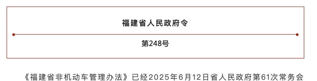 地方性电动自行车管理办法出台,《福建省非机动车管理办法》于今年6月份修订通过,11月1日起施行。新规中对非机动车生产、销售、登记、通行、停放、充电及其管理活动都作出了明确规定。其中重点罗列几条。