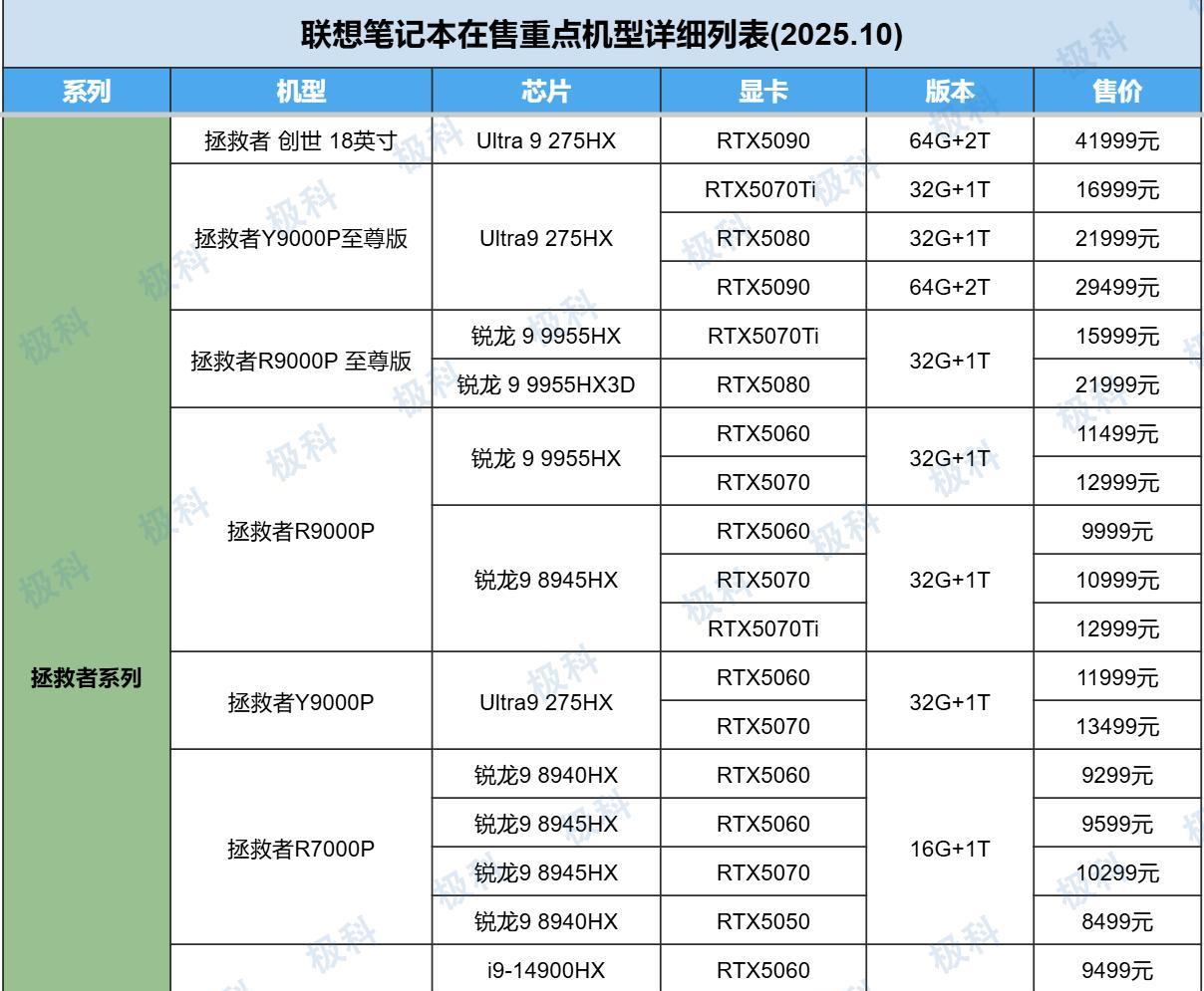 2、拯救者R9000P至尊版+ 锐龙9 9955HX+RTX5070Ti【32G+1T】(15999元)