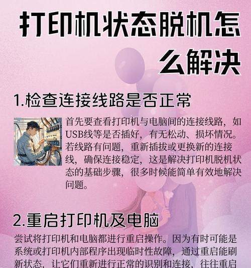 在使用打印机的过程中,我们常常会遇到打印机脱机状态的问题。解决这个问题需要我们仔细检查打印机的连接、打印纸和墨盒是否充足、电脑设置是否正确等等。如果以上方法都无法解决问题,我们可以尝试重新安装驱动程序、使用Windows自带的诊断工具或者寻找专业的维修服务。为了避免出现打印机脱机状态的问题,我们还需要定期进行常规的维护保养。