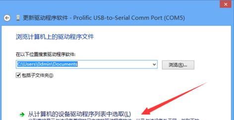 在弹出的窗口中选择“让我选择计算机上的驱动程序”,然后点击“浏览计算机以查找驱动程序软件”。