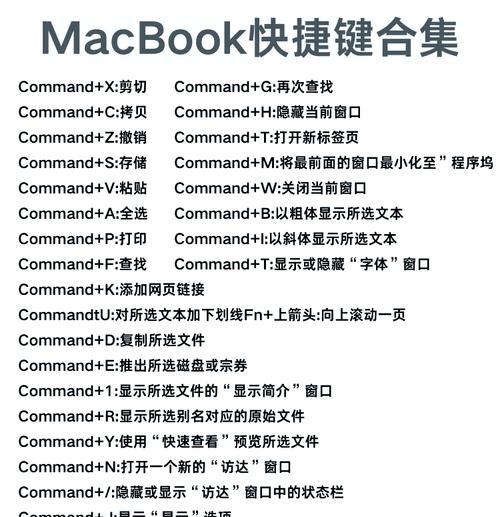 在使用MacBook的过程中,掌握一些快捷键可以大大提高工作效率。本文将为大家介绍MacBook的快捷键大全,以帮助你更好地使用这款电脑。