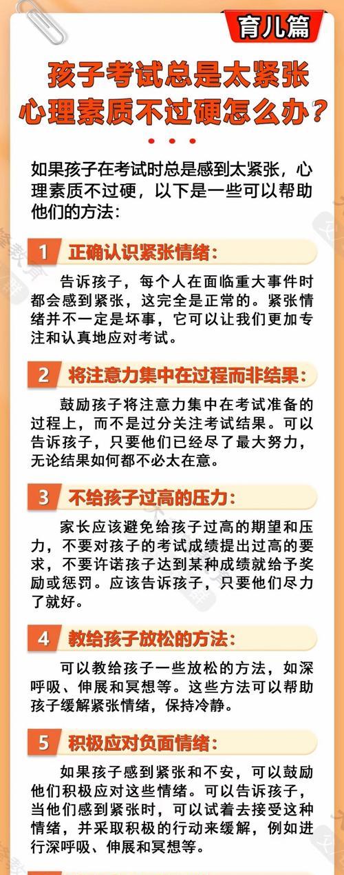 孩子缺乏自信是导致其考试前紧张的一个重要原因。家长可以通过赞扬、鼓励等方法,建立孩子的自信心,让孩子在考试前更加放松和自信。