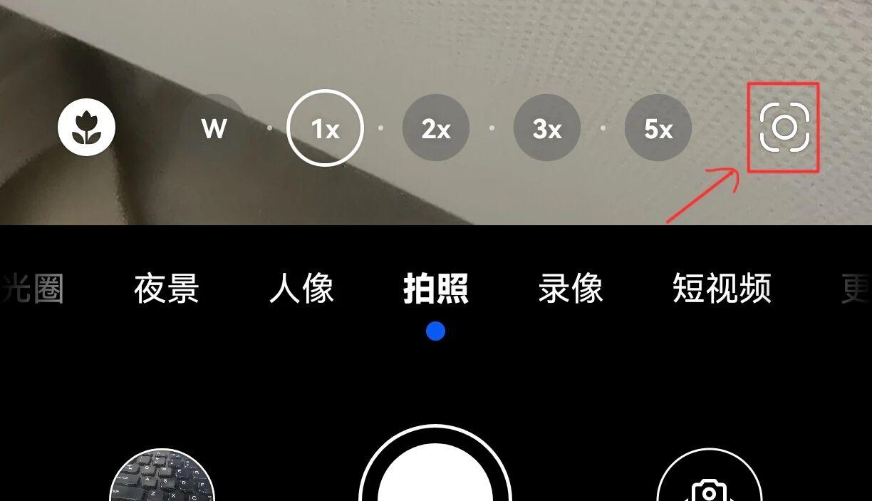 在这一排功能的右上方,你会发现有一个“外方内圆”的小图标,点击之后会进入到相机的扫码功能界面。
