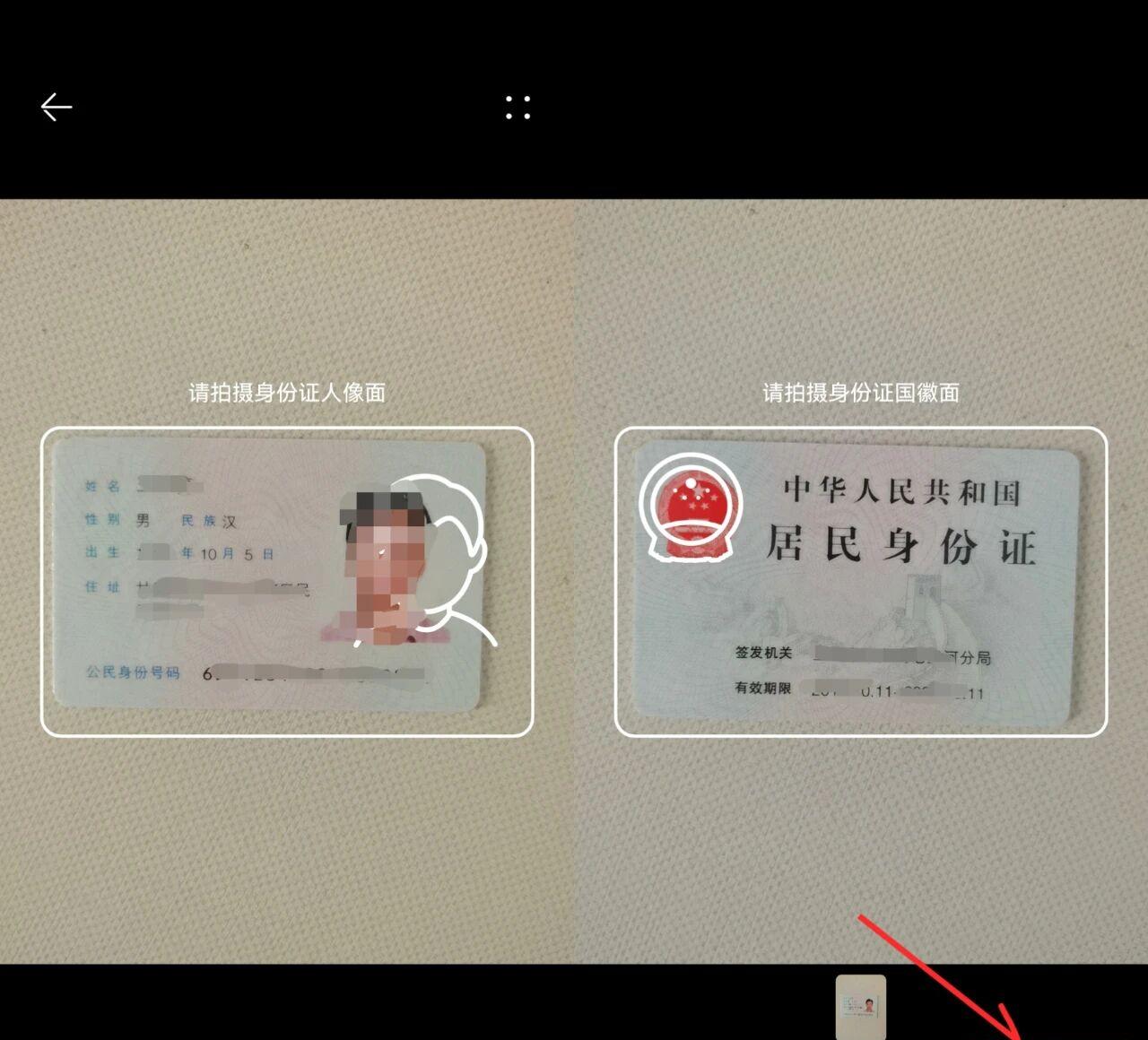 完成上一步的操作之后,手机会自动将身份证的两面排列在一起,上面是身份证的人像面,下方是身份证的背面。