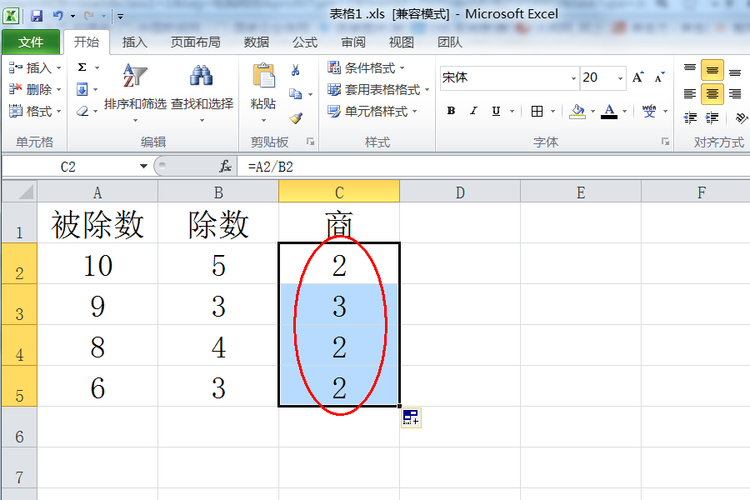 =A2 / B2,即可计算A2单元格数值除以B2单元格数值的结果。 - 直接计算数字:输入