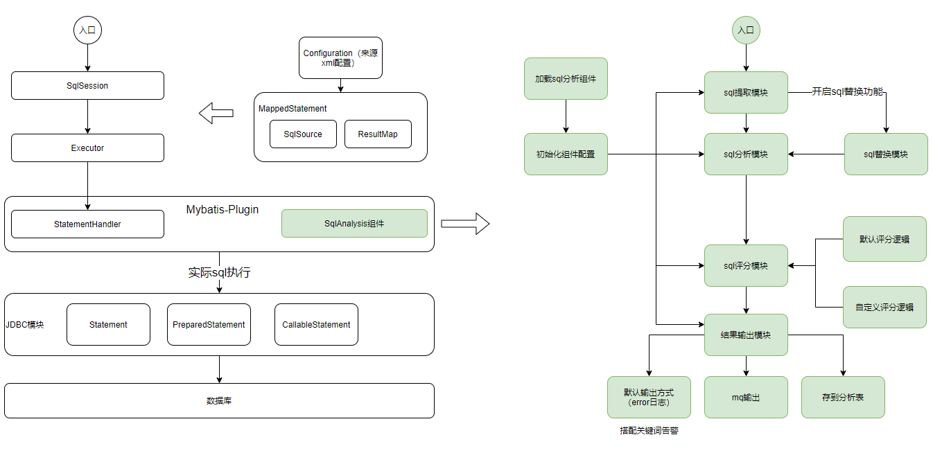 3、扩展:基于后续sql评分规则的扩展、以及分析结果以不同的方式输出的考虑,支持评分规则、输出方式的自定义扩展。