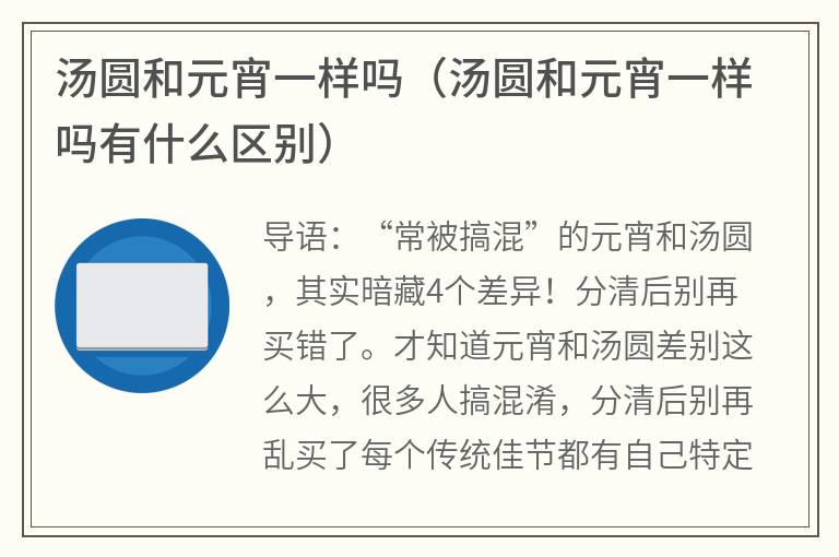 汤圆和元宵一样吗(汤圆和元宵一样吗有什么区别)
