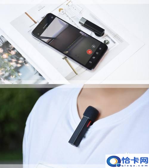3.第三种方式是选择无线麦克风,无线麦克风可以不用担心线材的长短,会更自由。像这种无线麦克风可以不用分发射端和接收端,两支麦配对后。任选一支接在手机上,另一支就直接夹在衣领收录声音。