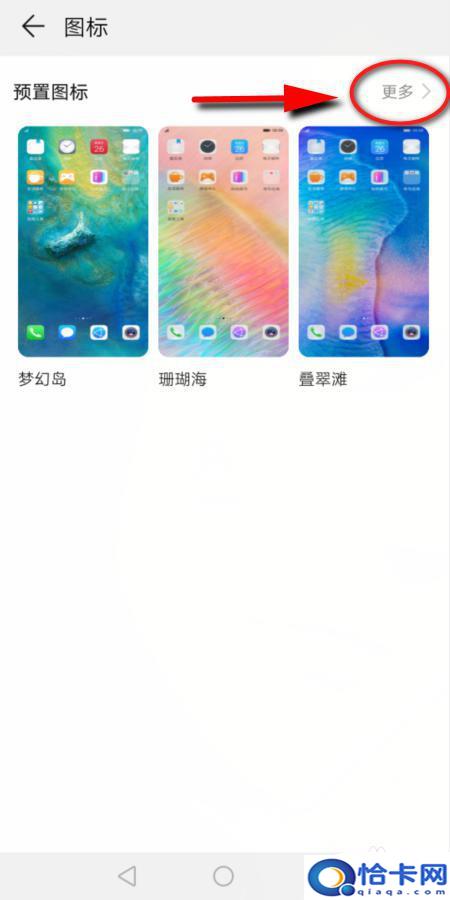 5.进入后可以看到3种 不同处预置图标,点击任一个设置即可。或者点击右上角的【更多】,查看更多的预置图标