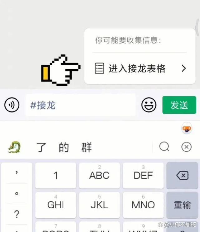 1、打开微信并进入要发起接龙的微信群。在输入框中输入接龙的主题和内容,比如“今天晚上的聚餐,请大家接力报名”。