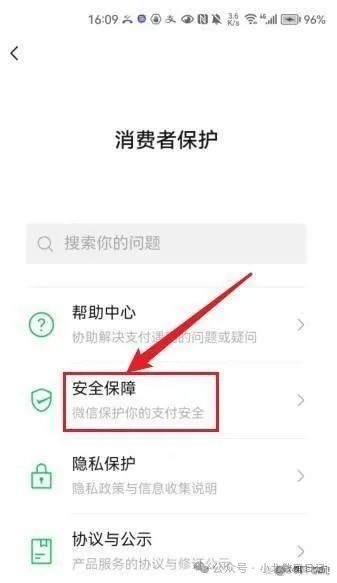 3、找到“安全保障”选项进入。提示“微信保护你的支付安全”。