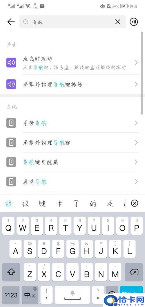 2.在手机设置中,我们需要找到导航方式管理。如果设置中功能太杂太多,那么可以利用设置上方搜索键,直接输入导航即可。