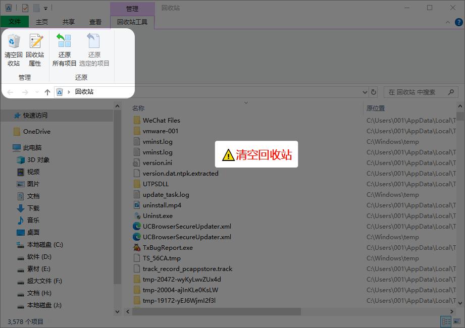回收站是我们误删文件的“避风港”,但时间久了,里面的文件也会占用不少C盘空间。这些文件其实是我们之前删除,但还保留在系统中的,只是被放在了回收站这个特殊的文件夹里。