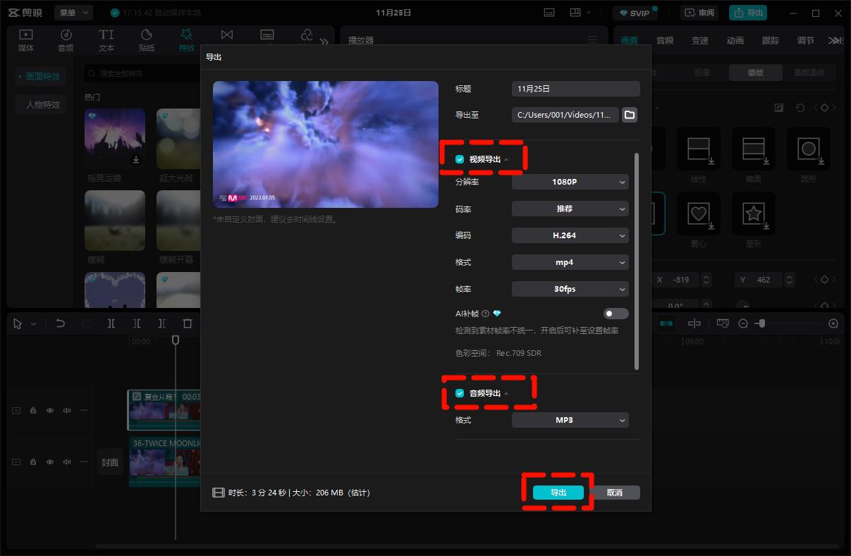 视频去除水印Step3:合并视频和特效