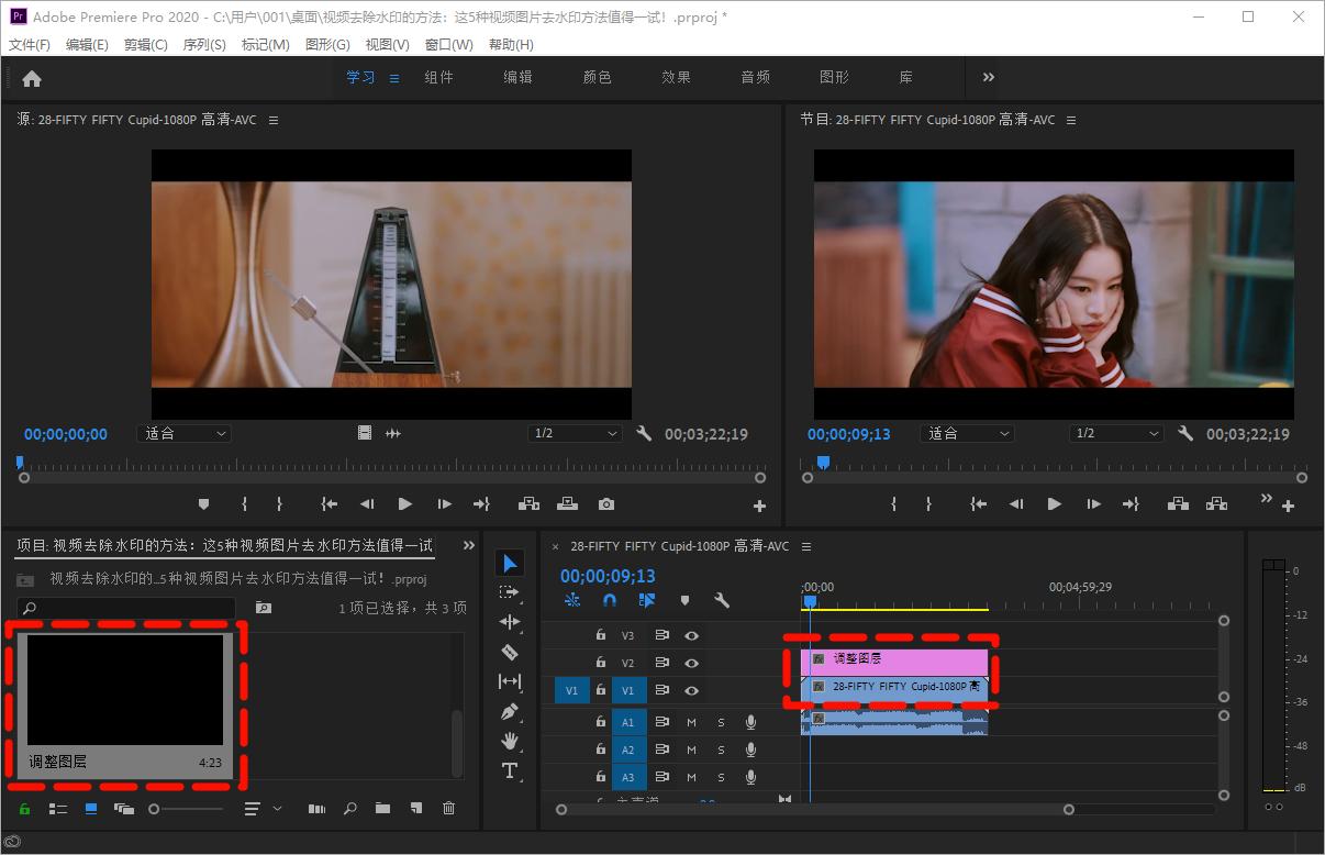 视频去除水印Step2:创建调整图层