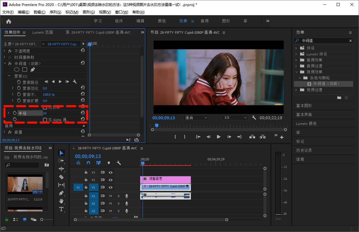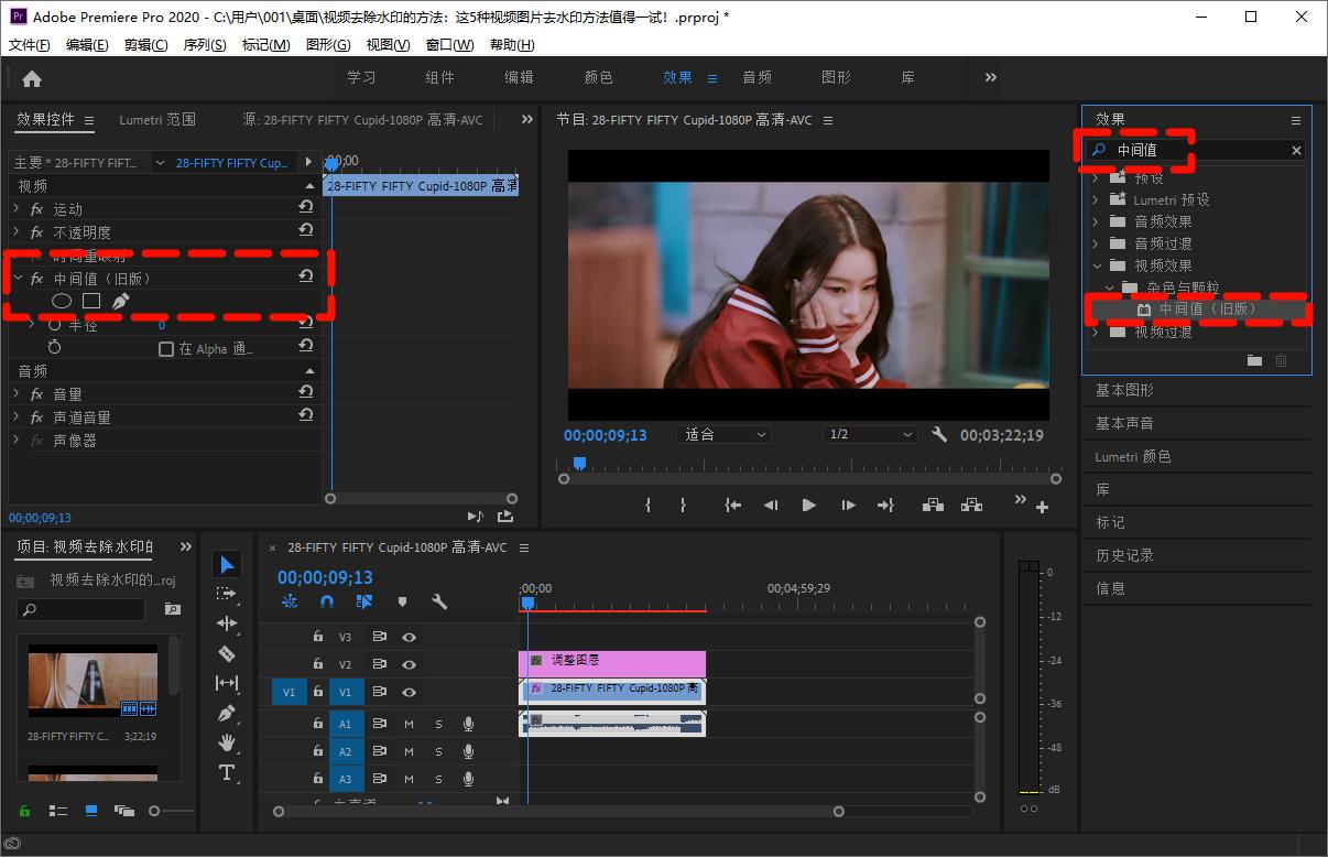 视频去除水印Step3:添加中间值效果