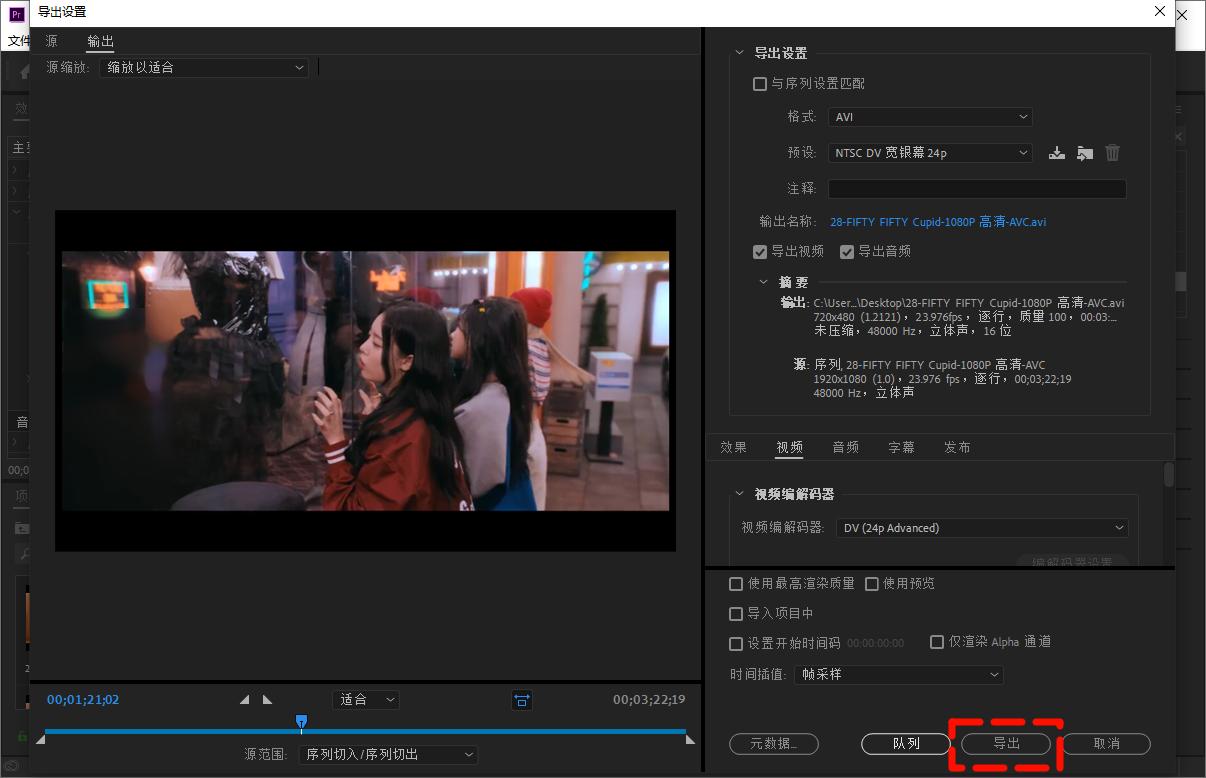 预览效果无误后,导出视频。