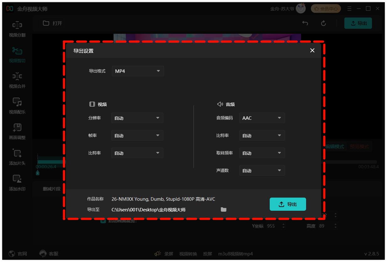 ● 软件版本:金舟视频大师v2.8.5