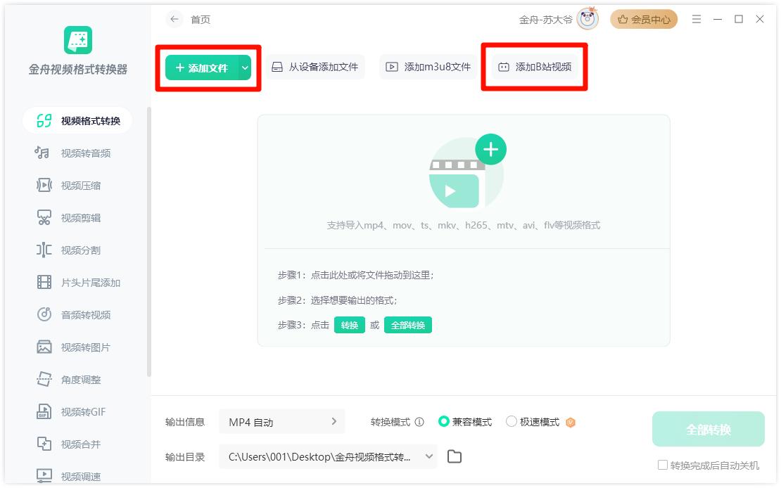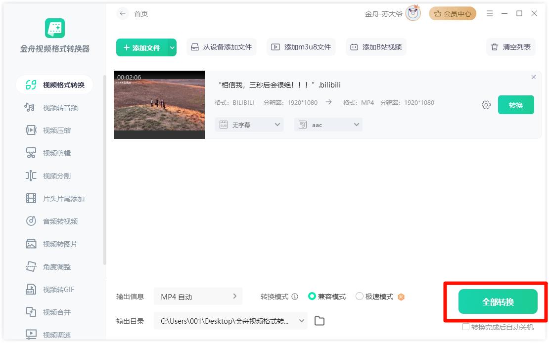 m4s转mp4-视频格式转换第四步、设置好视频的转换格式,可以调整视频的转换模式,一般默认是【兼容模式】,还可以自定义【输出目录】,一般我都是喜欢放在桌面,这样更方便查找。