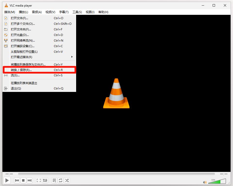 ■ 操作步骤:启动VLC Media Player,点击“媒体”选择“转换/保存”。