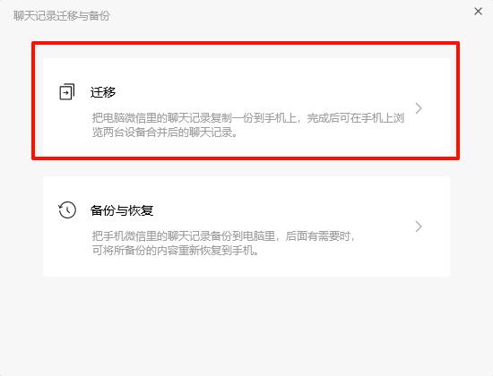 微信文件已过期或已被清理怎么找回Step2:进入聊天记录迁移与备份设置界面,选择“迁移聊天记录至另一台设备”,然后按照提示操作。