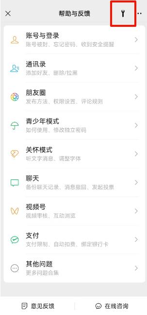 微信文件已过期或已被清理怎么找回Step2:在帮助与反馈的页面右上角找到小扳手图标,进入微信修复工具窗口。