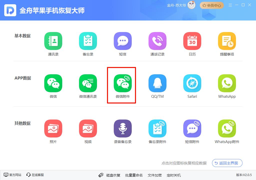 下面我们以『金舟苹果手机恢复大师』为例,讲解数据恢复软件是如何进行微信过期或被清理找回的: