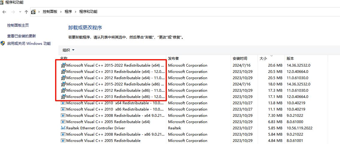win7一键修复所有dll缺失卸载旧版本:在控制面板中找到已安装的Visual C++ Redistributable Package,选择卸载。