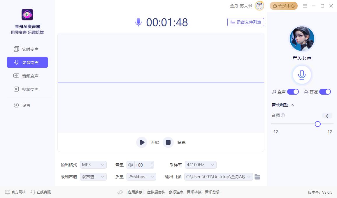 调整与优化: 如果变声效果不够理想,你可以回到金舟AI变声器的设置界面,对变声效果进行进一步的调整和优化。
