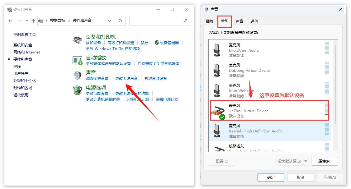 电脑变声器开麦就变声在电脑的声音控制面板里把我们的虚拟麦克风设置为默认设备。