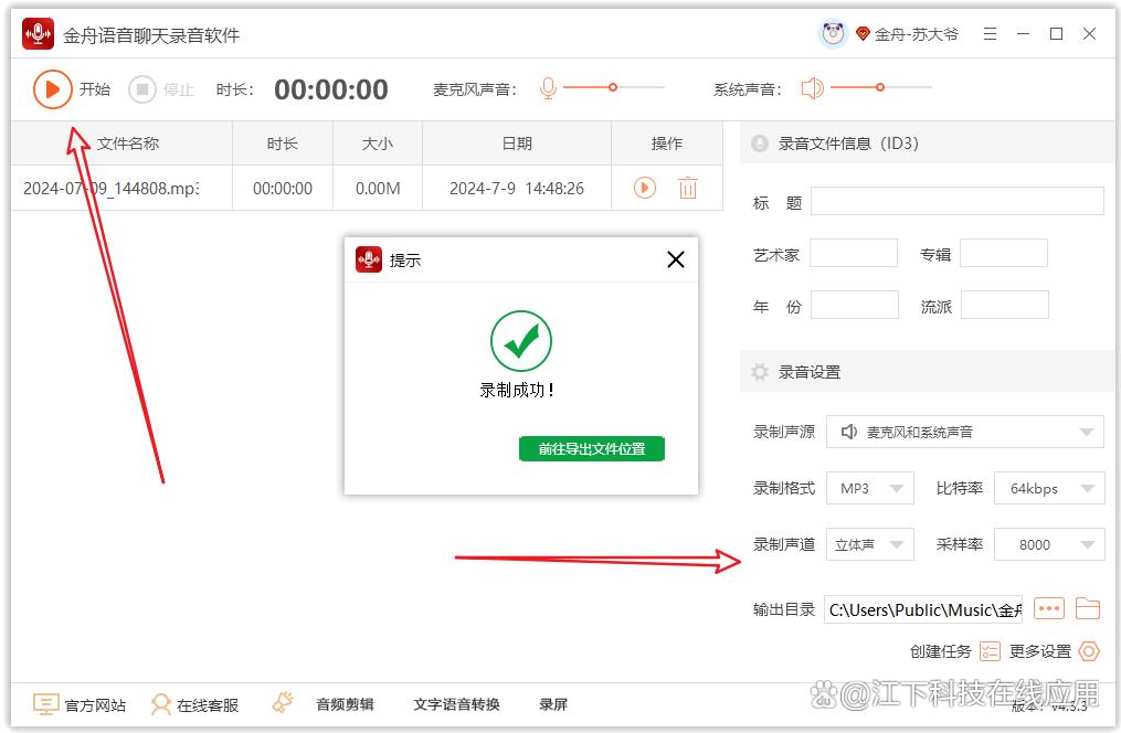 1. 金舟语言聊天录音软件是一款支持高品质录音软件,允许用户选择声音来源和保存格式,操作简便,适合多种录音场景。