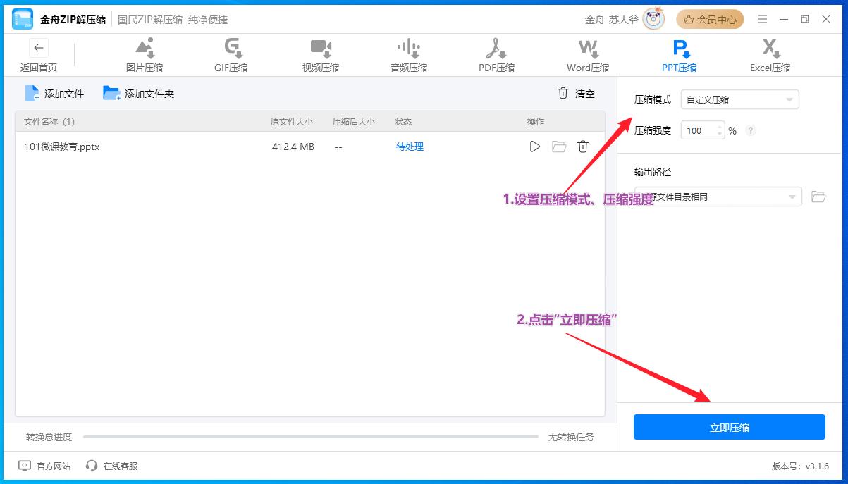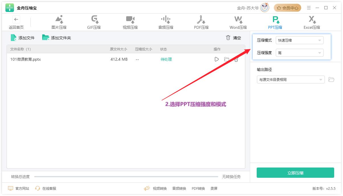 操作步骤3:点击「立即压缩」进行快速压缩!