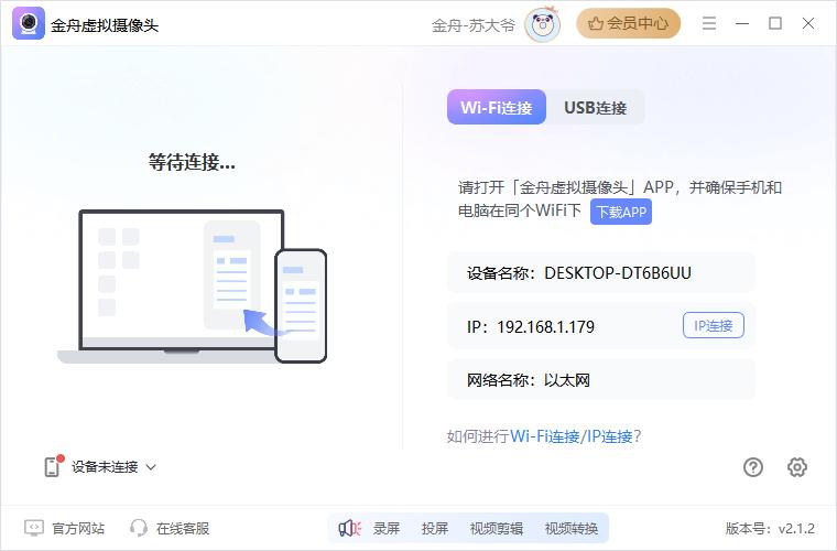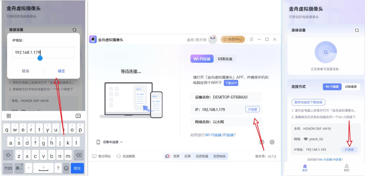 (2)在手机端和电脑端分别下载并安装金舟虚拟摄像头软件。