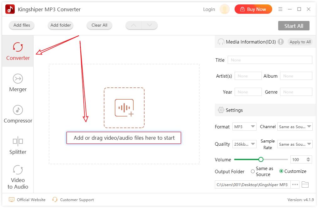 Step 1:运行Kingshiper MP3 Converter,默认是【Converter】,直接添加音频文件。