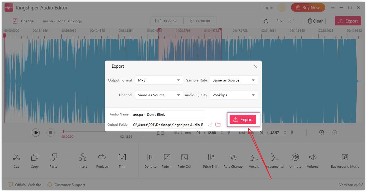 Step 3:对音频剪辑好了之后,点击【Export】,进行音频导出。