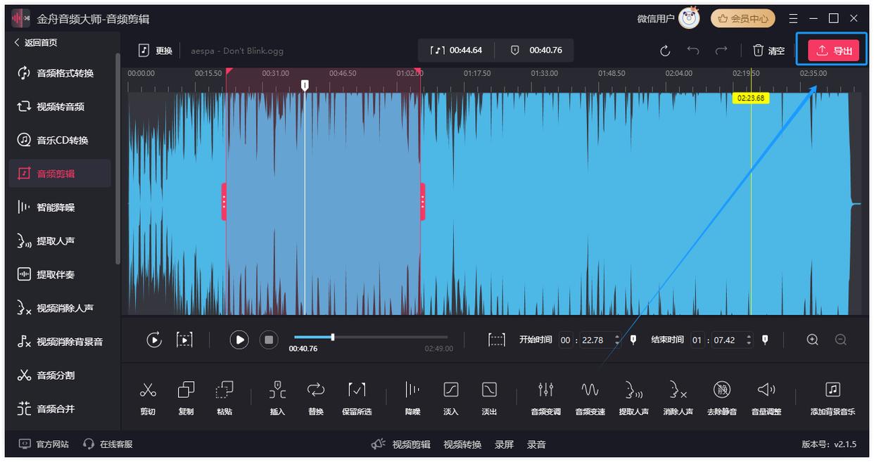 步骤3.点击“导出”,音频剪辑处理完成。