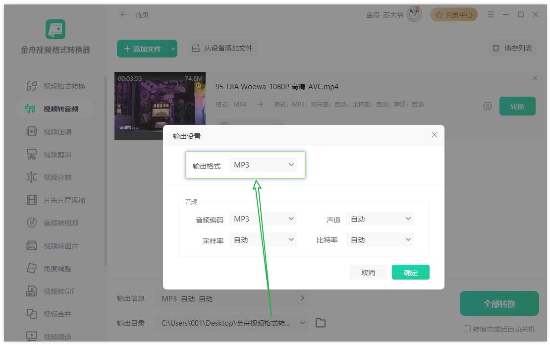 Mp4转mp3工具2:金舟视频格式转换器