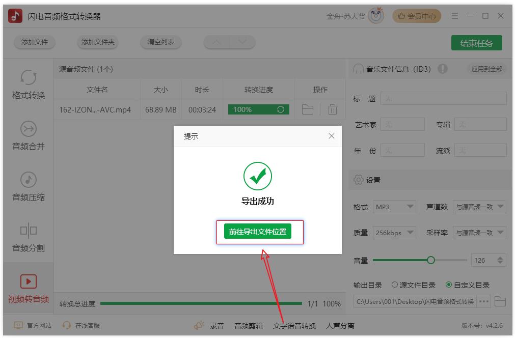步骤5:转换成功之后,点击【前往导出文件夹】进行文件查看。