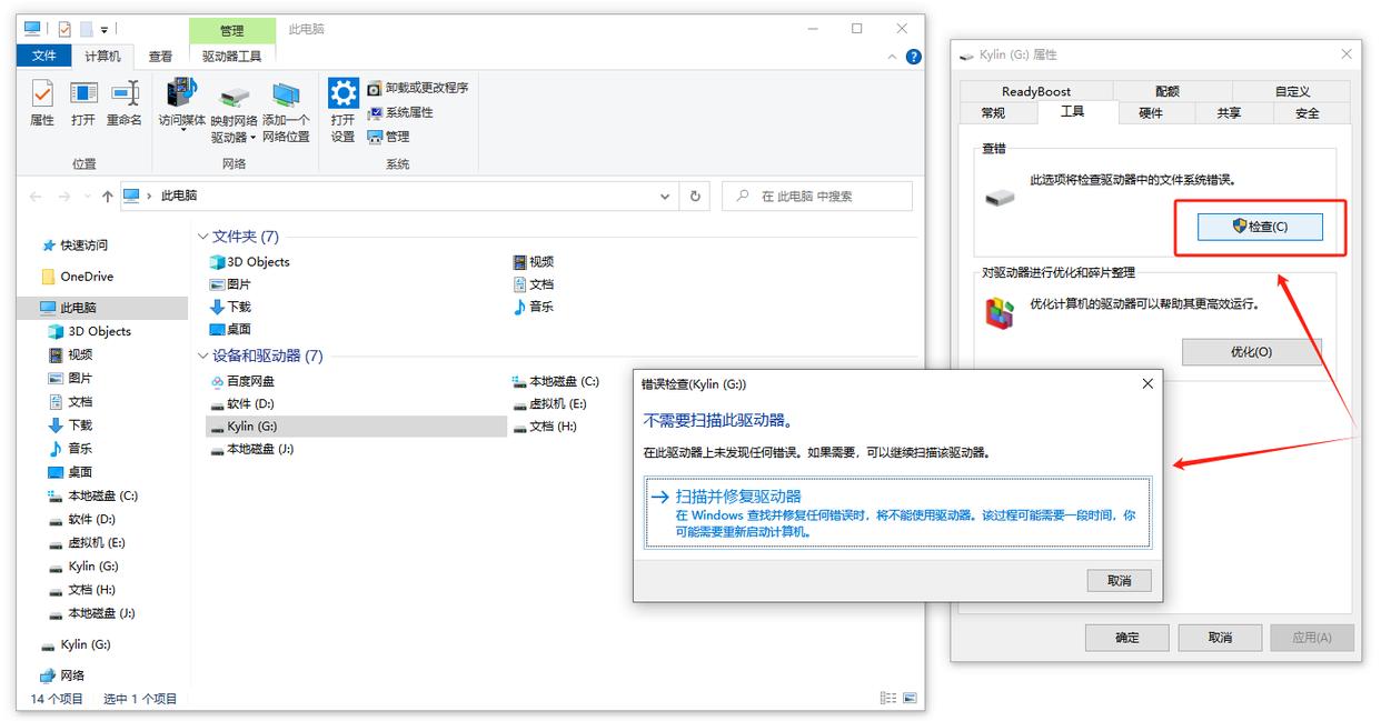 如果文件被删除后,你立即意识到了这个问题并关闭了U盘,那么你可以尝试在Windows系统中使用回收站进行恢复。将U盘插入电脑后,打开“我的电脑”或“此电脑”,找到U盘驱动器并右键点击它。选择“属性”】“工具”】“检查”来扫描并恢复可能存在的文件。