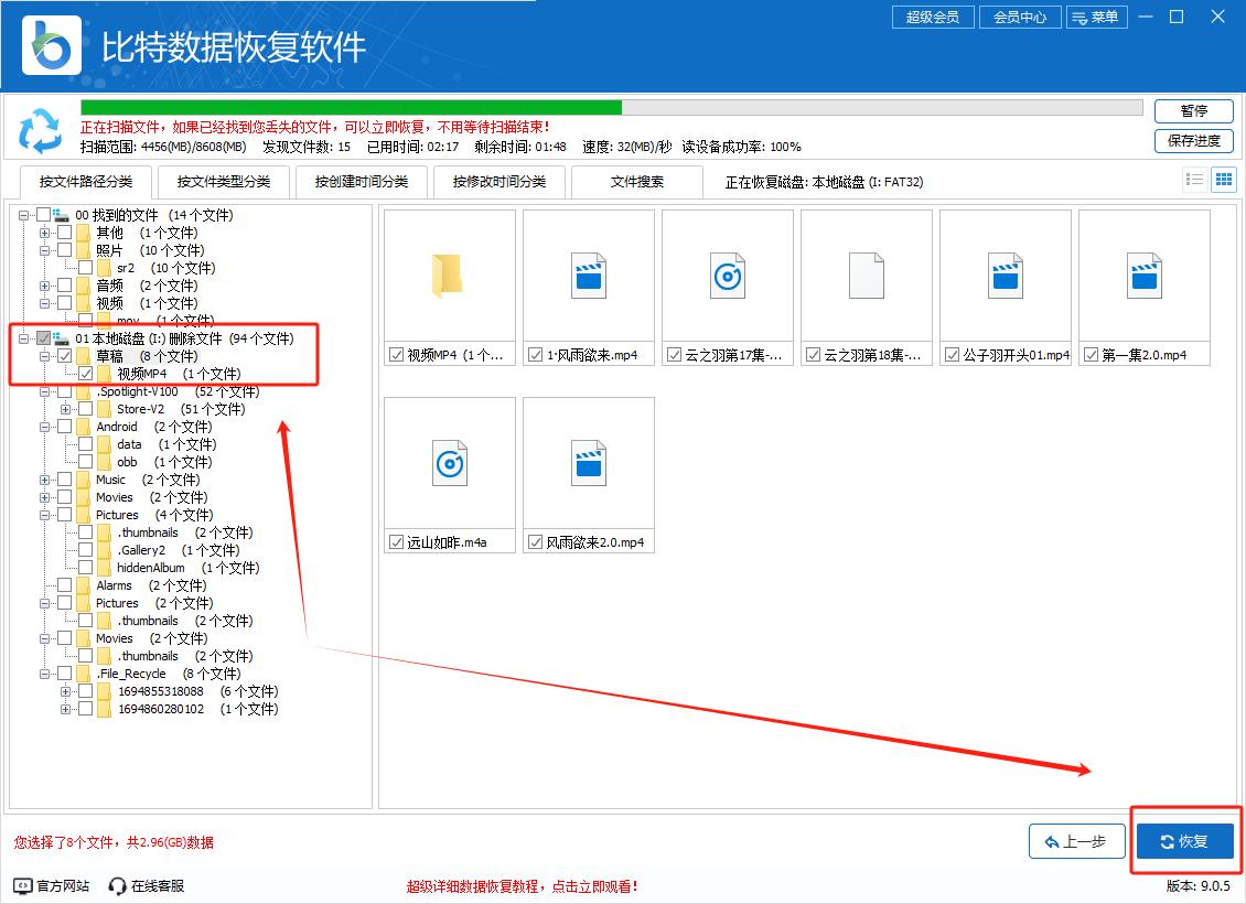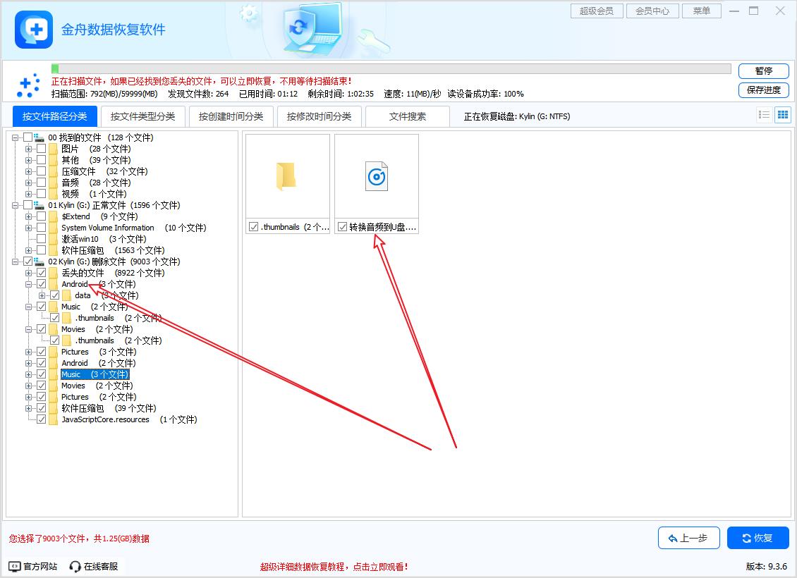 Step3:扫描文件时长根据磁盘文件数量而定,找到自己想要的文件直接勾选,点击【恢复】也是可以的。