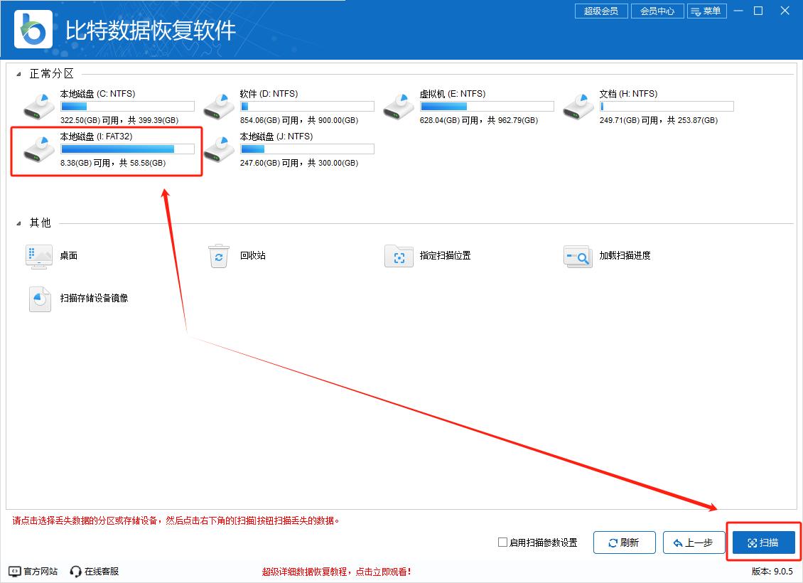 Step2:选择U盘磁盘,例如小编选择的【本地磁盘(I:FAT32)】,点击扫描进行下一步。