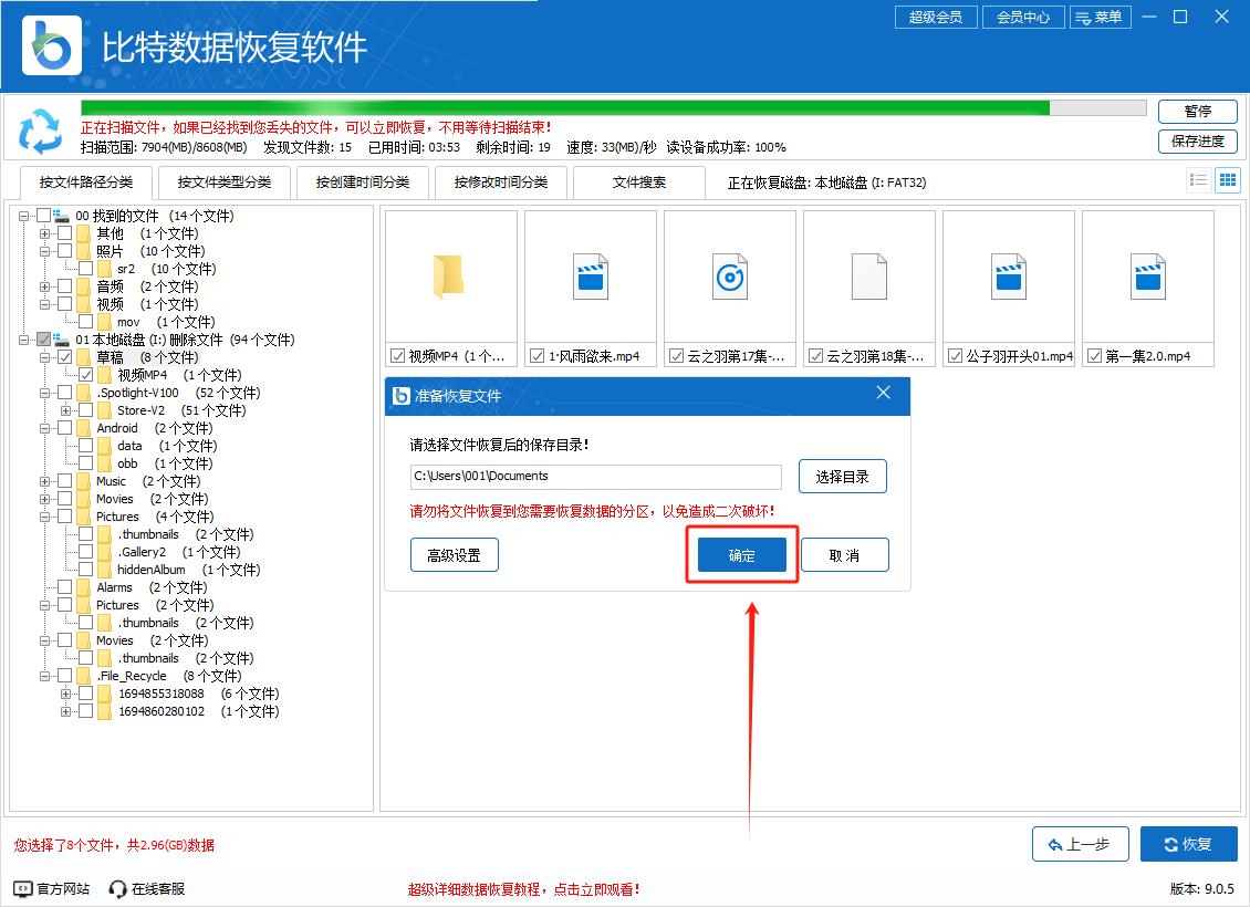Step4:选择文件需要恢复保存的目录,点击【确定】即可。