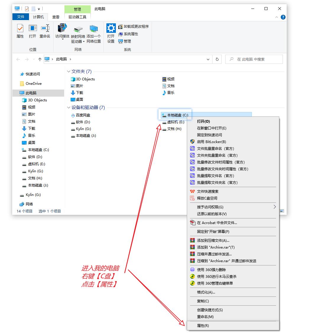 步骤1:打开“此电脑”或“我的电脑”,右键点击系统盘(通常是C盘),选择“属性”。